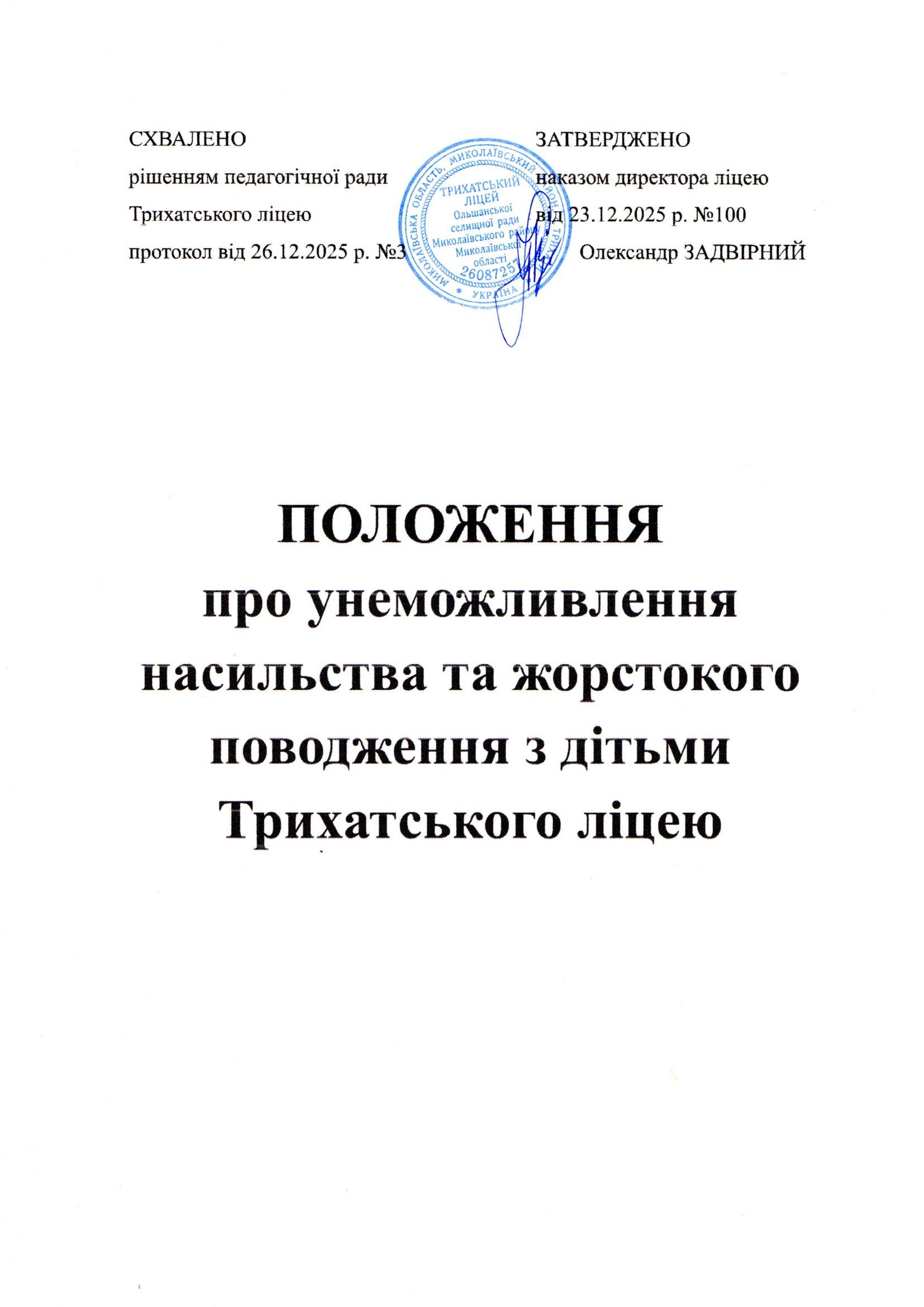 - Територія обслуговування, закріплена за Трихатським ЗЗСО