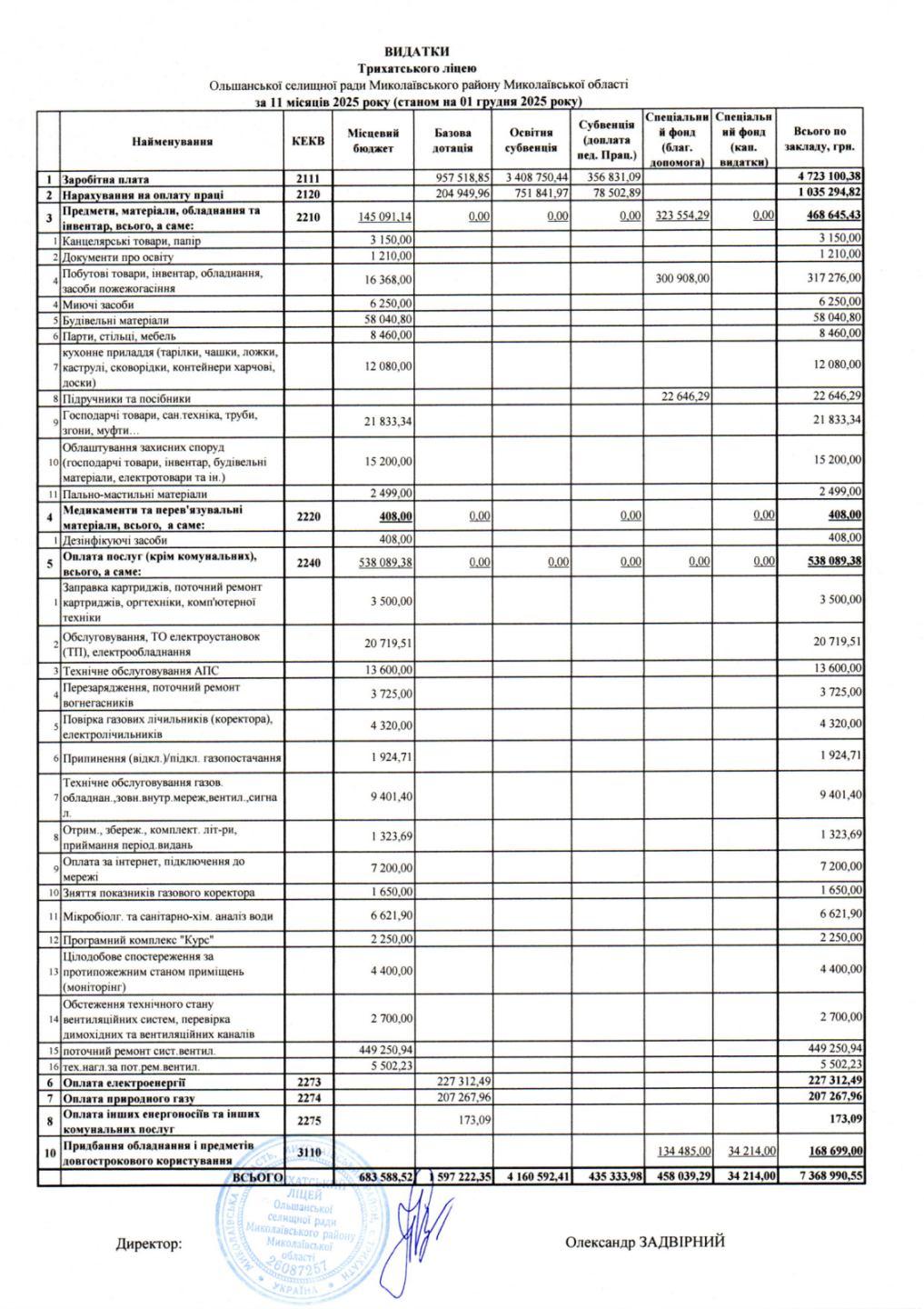 - Територія обслуговування, закріплена за Трихатським ЗЗСО