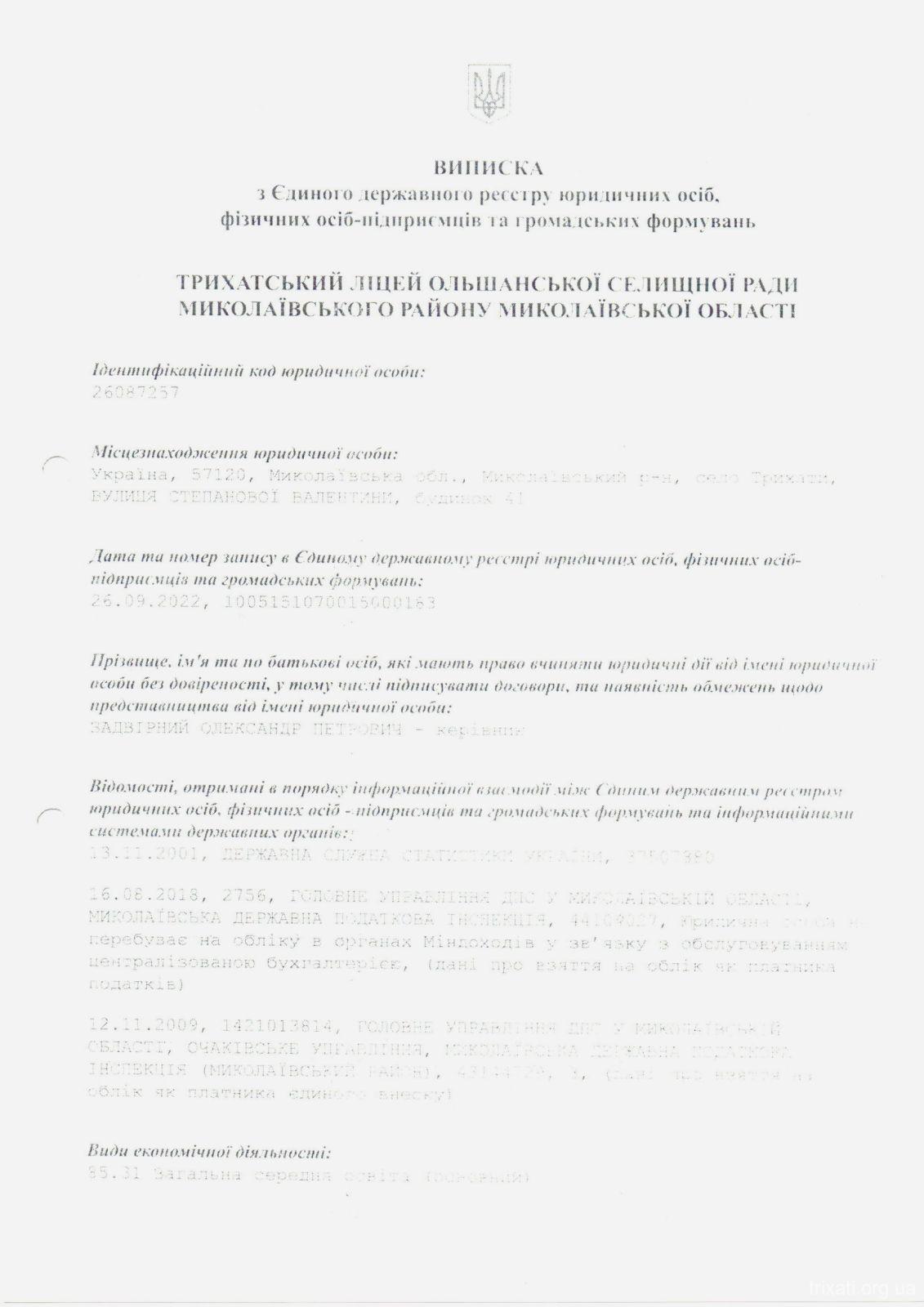 Статут Трихатського ЗЗСО Ольшанської селищної ради Миколаївського району Миколаївської області 17 Листопада, 2020, 15:44Скачати Документ