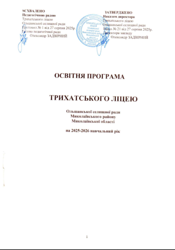 Освітня програма Трихатського ліцею Ольшанської селищної ради Миколаївського району Миколаївської області на 2025-2026 навчальний рік 03 Грудня, 2025, 14:59 Трихатський-ліцей-Освітня-програмаЗавантажити