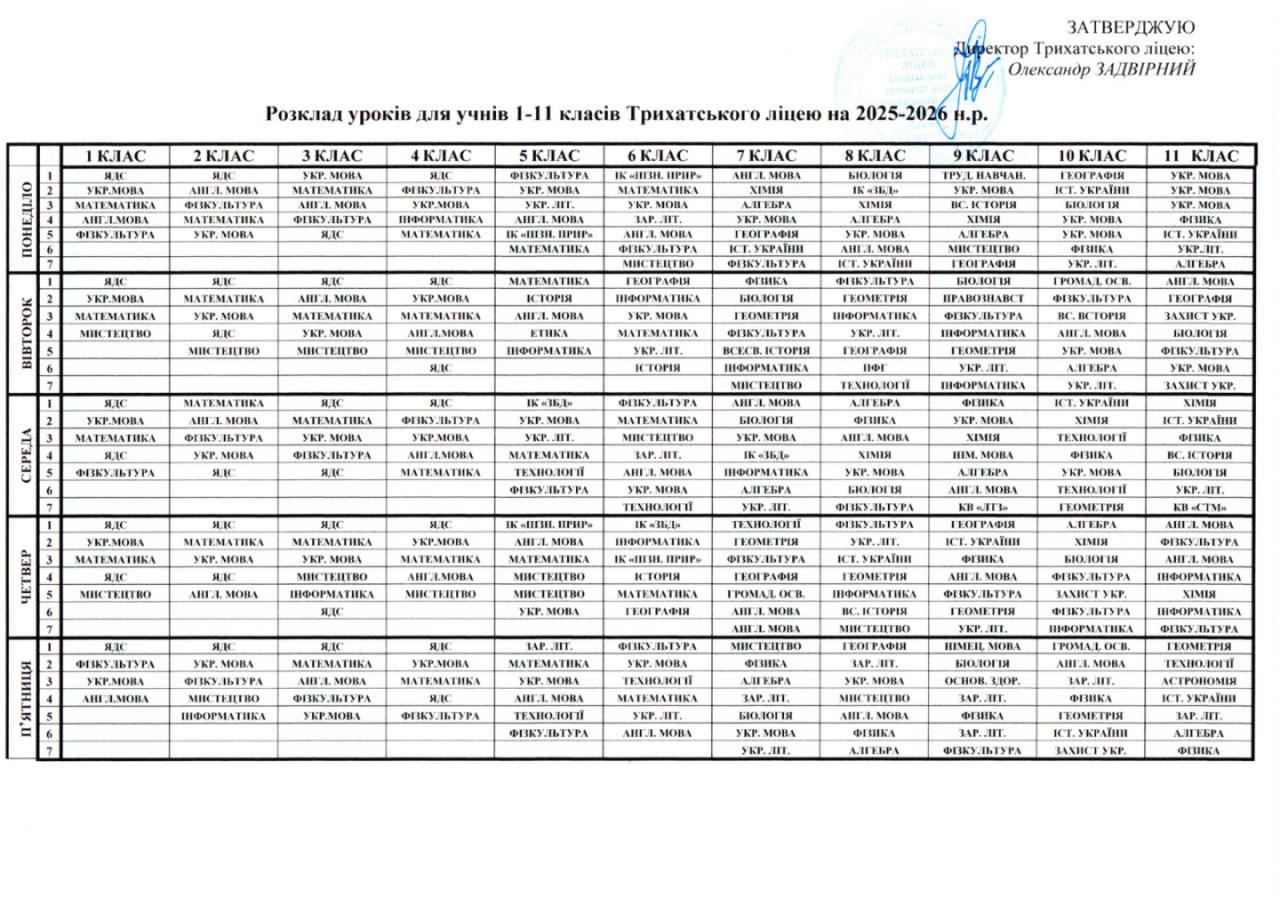 - Територія обслуговування, закріплена за Трихатським ЗЗСО